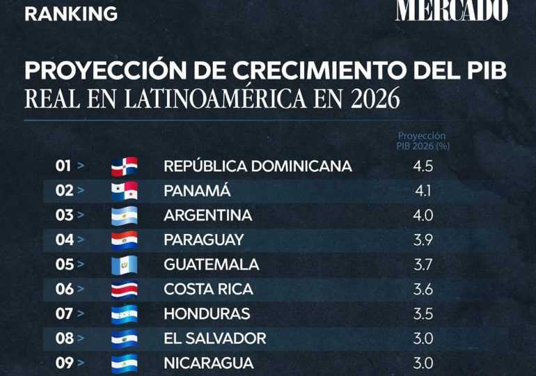 Santo Domingo. – La República Dominicana encabeza el ranking de las proyecciones de crecimiento del Producto Interno Bruto (PIB) real en América Latina para el año 2026 con un 4.5 %, según datos del informe Perspectivas Económicas Mundiales del Banco Mundial.